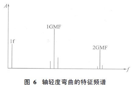 振动信号将以齿轮啮合频率及其谐波为载波频率,齿轮所在轴转频及其倍频为调制频率的啮合频率调制,但调制边频带窄且稀;如果弯曲轴上有多对齿轮啮合,则会出现多对齿轮啮合调制;振动能量(有效值和峭度)一定程度增加,特别是轴向振动能量有较大增加。特征频谱见图6。
