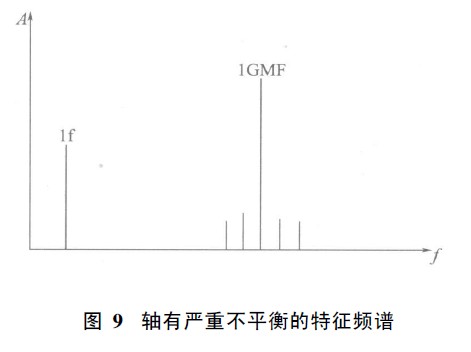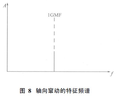 振动信号将以齿轮啮合频率及其谐波为载波频率,齿轮所在轴转频及其倍频为调制频频率的啮合频率调制,但边频带较少而稀,解调谱上出现轴的转频;有故障轴的转频成分有较大的增加;振动能量(有效值和峭度)有一定程度增加,特别是轴向振动能量有较大增加。特征频谱见图9。