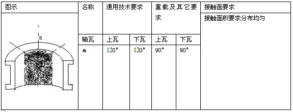 (1)接触范围角a与接触面、接触斑点要求。轴瓦的接触范围角a与接触面要求见表1。