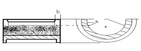 b、油槽带分布在上、下轴瓦结合部位处(两侧)。如图2所示。油槽带成圆弧楔形,瓦口结合面处向外侧深度一般在1~3mm。视轴瓦的大小,油槽带宽度h一般为8~40mm。油槽带单边距轴瓦端面的尺寸b一般为8~25mm。上述要求通常在图样上明确标出。油槽带的长度为轴瓦轴向长度的85%左右,是一个能存较大量的润滑油的带状油槽,便于轴瓦与轴的润滑与冷却,油槽带通常由机械加工而成,也有钳工手工加工的。