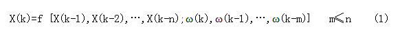研究表明,当轴承元件在负载旋转过程中出现疲劳、压痕或局部腐蚀等故障时将会对元件产生冲击振动,而这些振动反复互激,又引起更大振颤,可以用振动传感器(加速度计)获取滚动轴承的振动加速度信息。作为二次效应的振动加速度信号X可以看作是滚动轴承旋转角速度ω的非线性函数[1],对于这样一个动态非线性系统,可用如下离散系统加以描述,即: