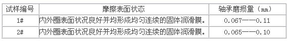摩擦系数、磨损率是由大连理工大学振动与强度测试中心(MA认证单位)在CZS-4000多功能大型试验机上进行的:载荷83MPa,速度16mm/s,转动形式为360°圆周往复运动,安装前预涂固体润滑剂,总滑动距离为1000m,有效试验时间为1042分钟。