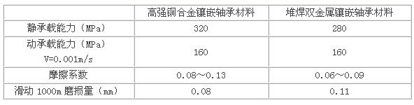 2.5双金属自润滑轴承材料与单一特制高强度铜合金材料的性能对比,见下表: